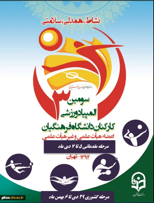 امتیاز دهید : برنامه زمانبندی المپیاد ورزشی کارکنان دانشگاه فرهنگیان منطقه 9کشور چهارشنبه 2 دی 1394 ساعت 10:47
