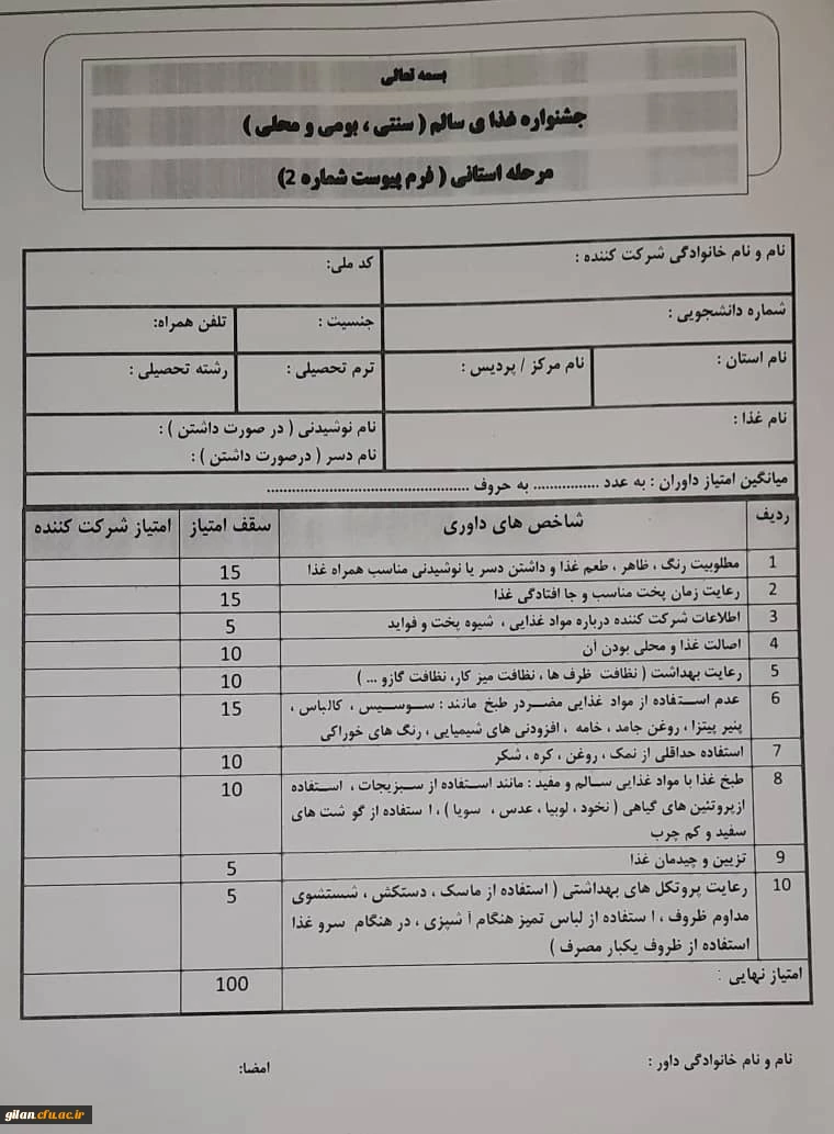 امتیاز دهید : اطلاعیه شماره 2- برگزاری جشنواره غذای سالم ایرانی (سنتی، بومی و محلی) 2 شنبه 20 آذر 1400 ساعت 10:26