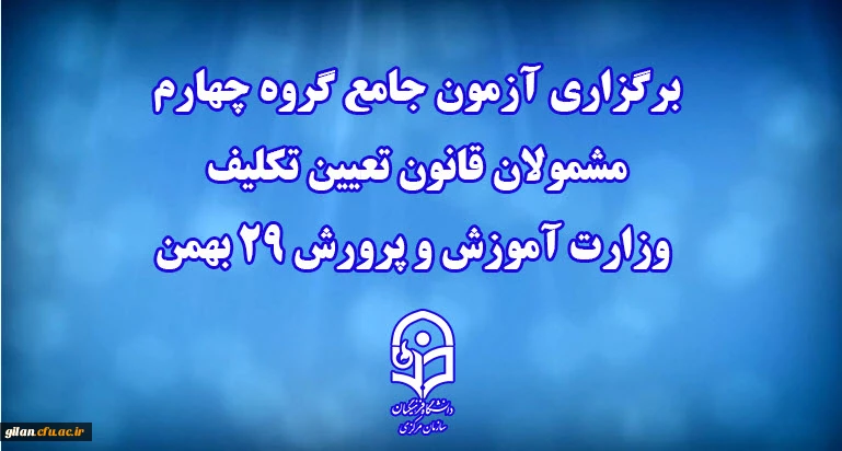 برگزاری آزمون جامع گروه چهارم مشمولان قانون تعیین تکلیف وزارت آموزش و پرورش 29 بهمن 2