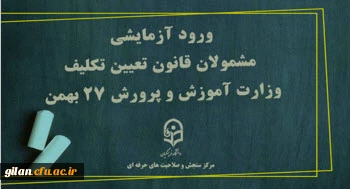 روز چهارشنبه 27 بهمن ماه جاری زمان ورود آزمایشی مشمولان قانون تعیین تکلیف وزارت آموزش و پرورش و جا ماندگان دوره های قبل تعیین تکلیف و مهارت آموز ان ماده 28 3