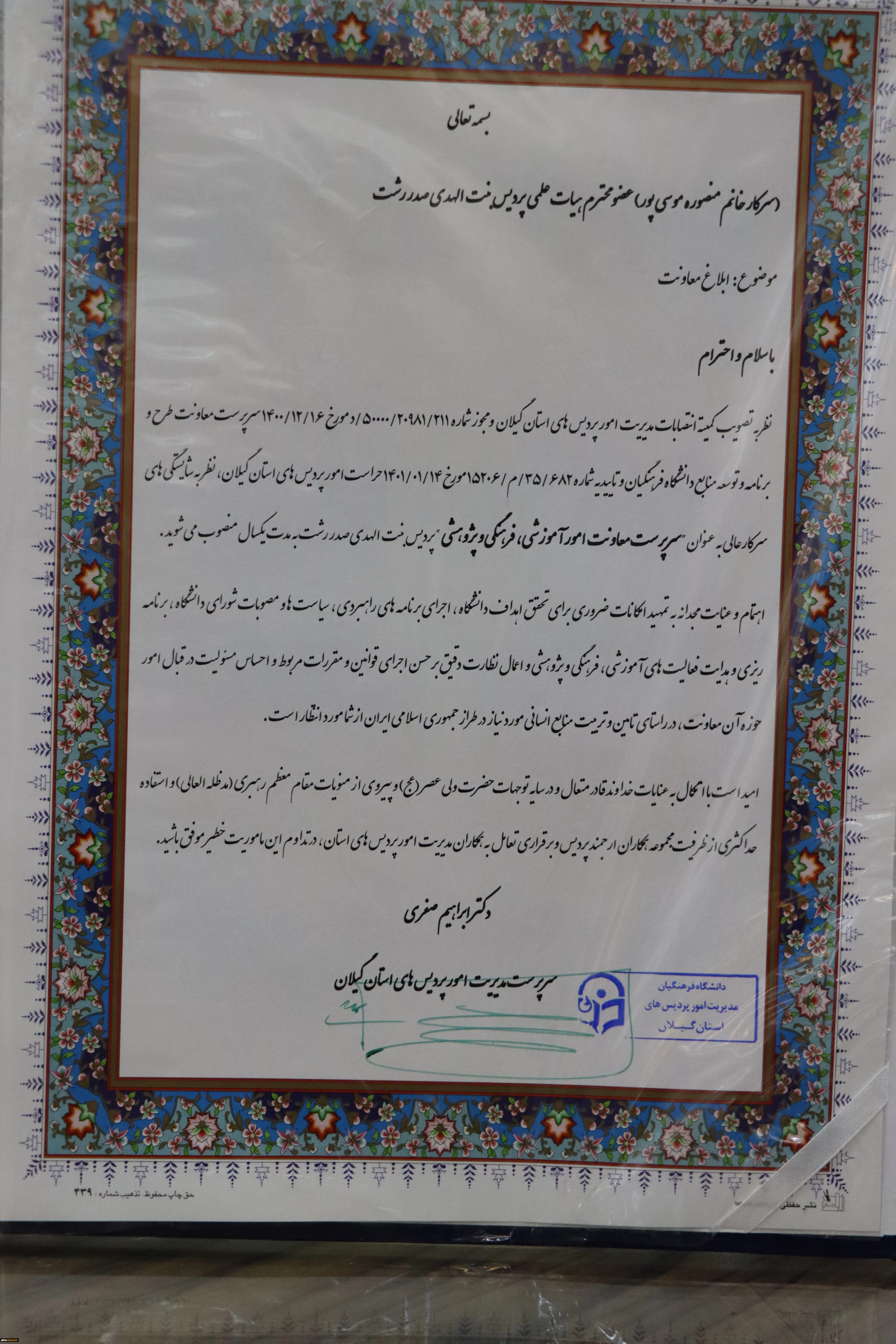 دکتر منصوره موسی پور به عنوان سرپرست معاونت امور آموزشی، فرهنگی و پرورشی پردیس بنت الهدی صدر گیلان معرفی شد 5
