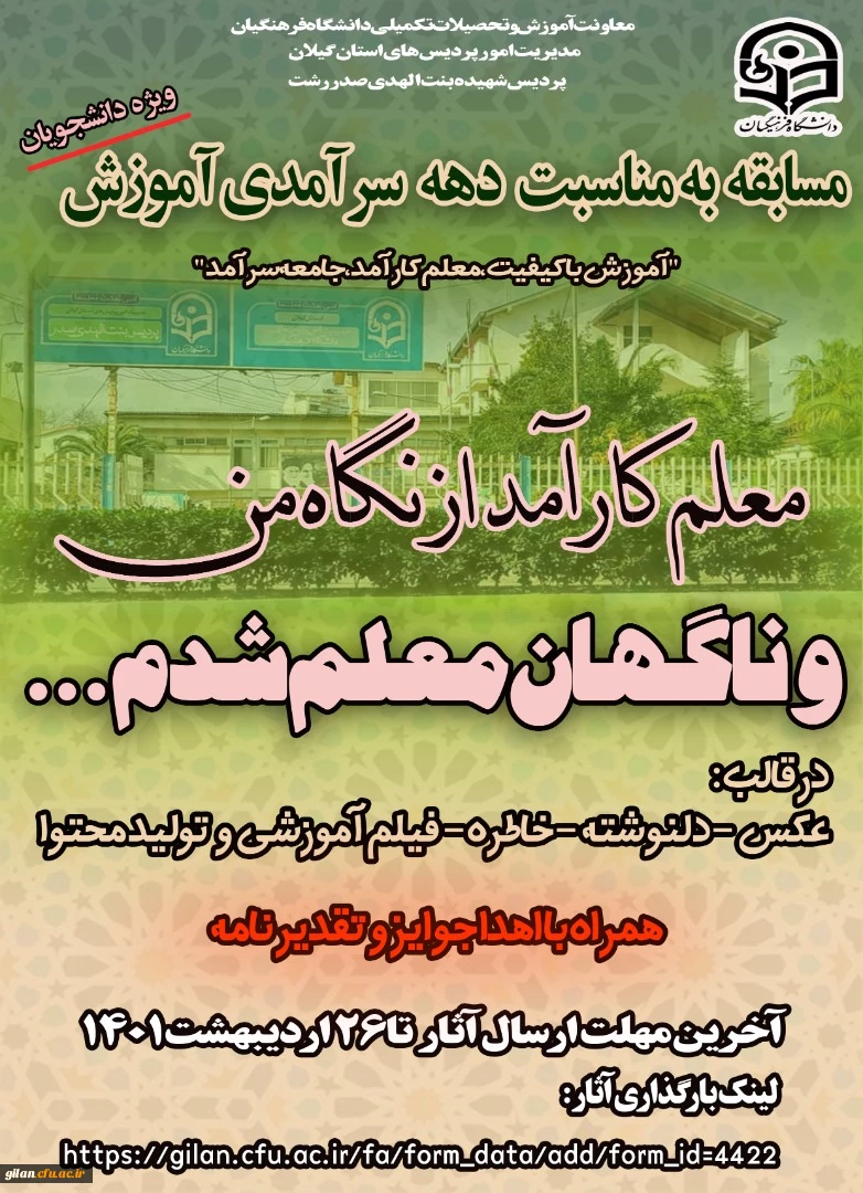 امتیاز دهید : مسابقه ویژه دهه سرامدی آموزش مختص دانشجومعلمان دختر 2 دوشنبه 12 اردیبهشت 1401 ساعت 18:34
