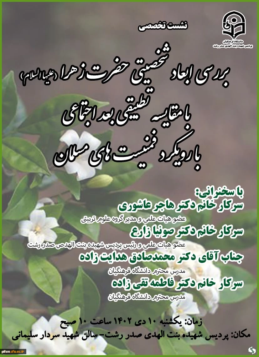 برگزاری نشست علمی-تخصصی درمورد ابعاد شخصیتی حضرت فاطمه زهرا سلام الله علیها باتاکید بررویکرد اجتماعی حضرت در مقایسه تطبیقی بافمنیست های اسلامی 2
