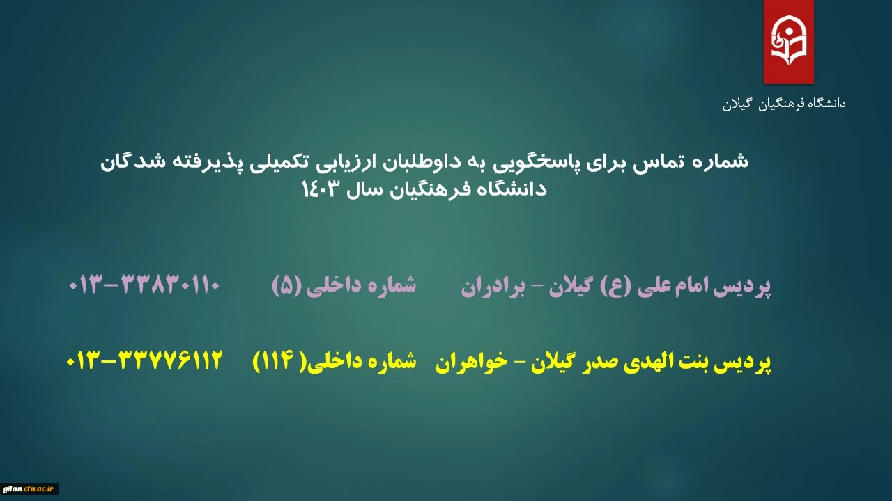 شماره تماس برای پاسخگویی به داوطلبان ارزیابی تکمیلی پذیرفته شدگان دانشگاه فرهنگیان سال 1403 2