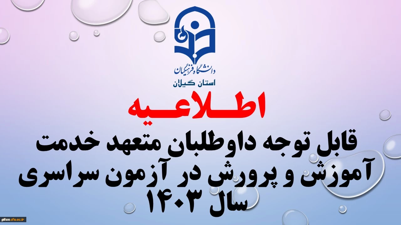 امتیاز دهید : قابل توجه داوطلبان متعهد خدمت آموزش و پرورش در آزمون سراسری سال ۱۴۰۳ 2 شنبه 10 شهریور 1403 ساعت 16:24