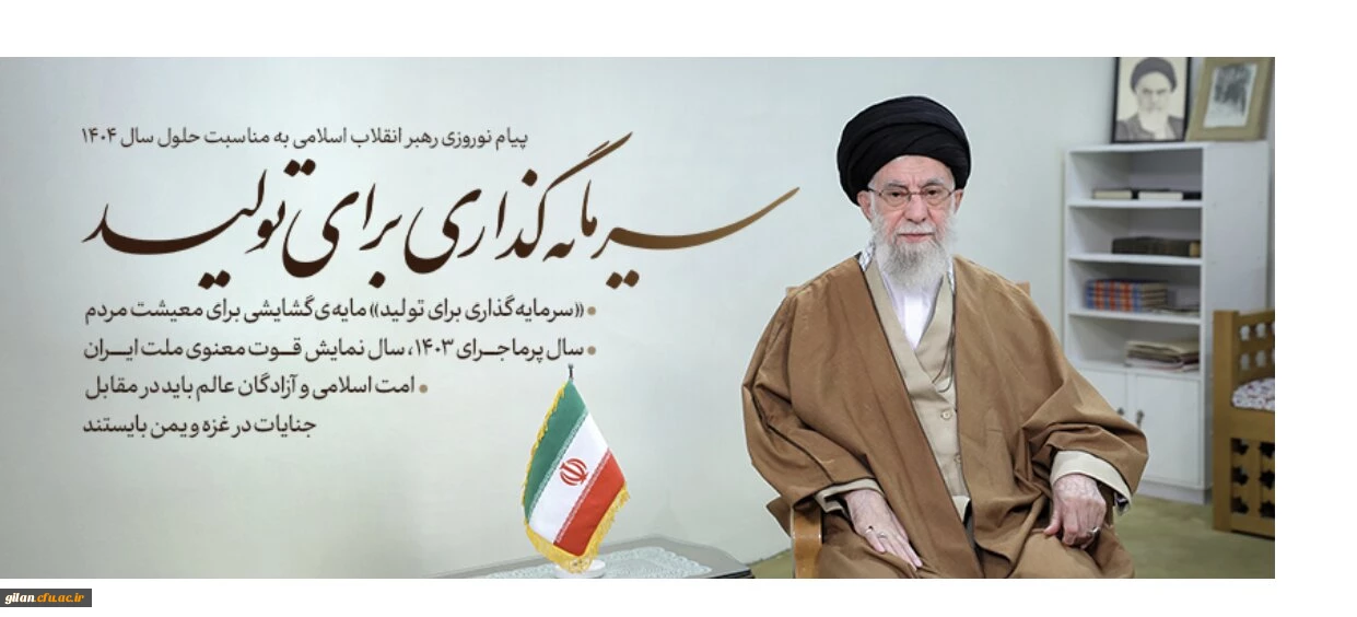 رهبر معظم انقلاب، در پیامی به مناسبت آغاز سال نو، سال ۱۴۰۴ با عنوان «سرمایه گذاری برای تولید» نامگذاری کردند. 2