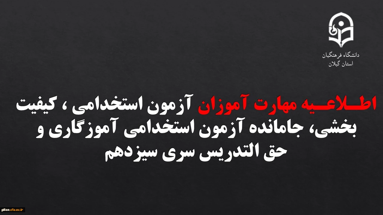 اطـلاعـیه مهارت آموزان آزمون استخدامی ، کیفیت بخشی، جامانده آزمون استخدامی آموزگاری و حق التدریس سری سیزدهم 2