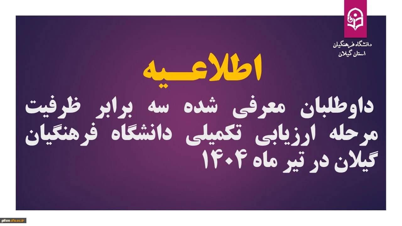 اطلاعـیه داوطلبان معرفی شده سه برابر ظرفیت مرحله ارزیابی تکمیلی دانشگاه فرهنگیان گیلان در تیر ماه 1404 2