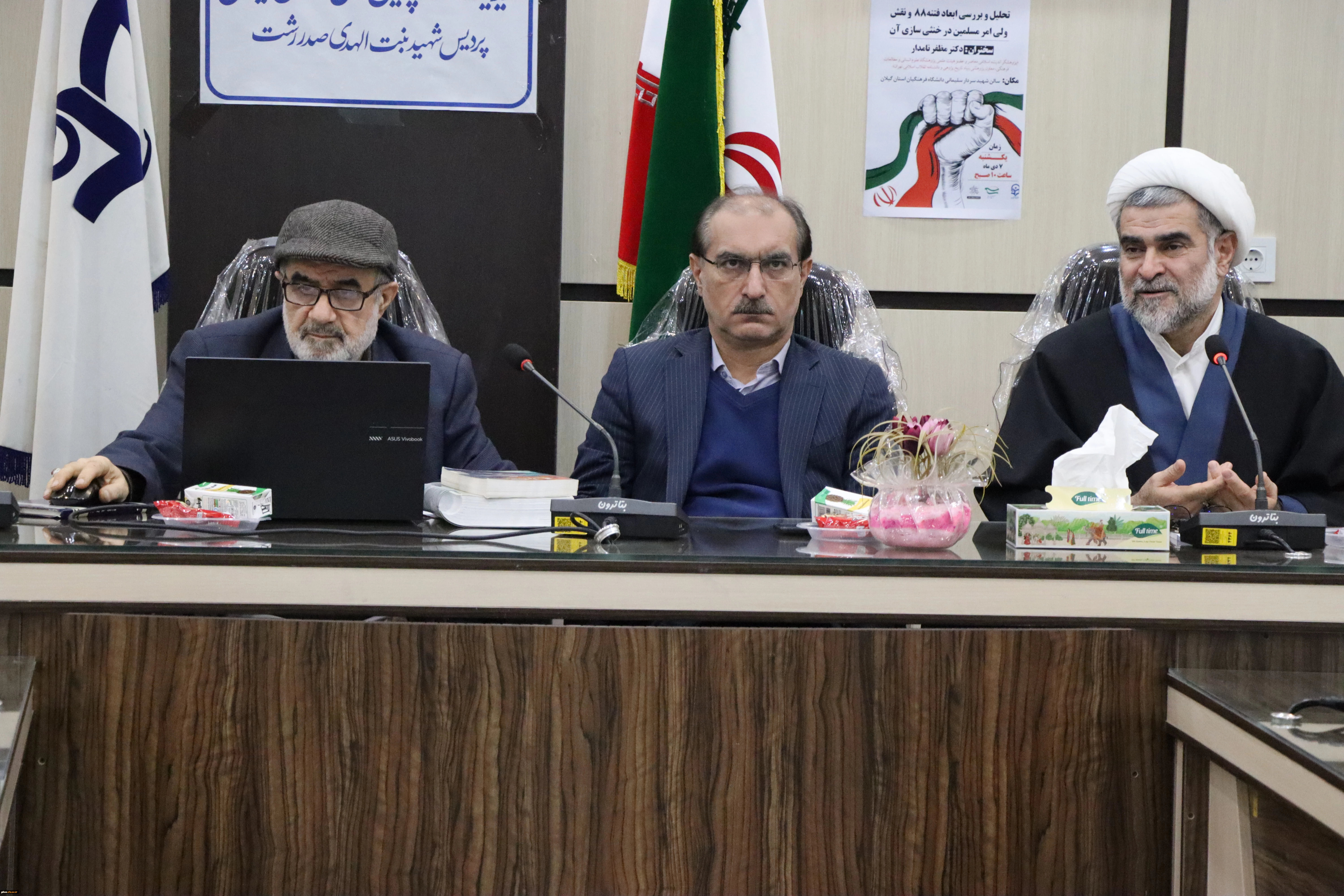 در ابتدای این نشست دکتر محمد دوستار سرپرست دانشگاه فرهنگیان گیلان و حجت الاسلام والمسلمین حاج آقا عطایی مسئول دفتر نهاد نمایندگی مقام معظم رهبری در دانشگاه با اشاره به حضور پرشکوه مردم گیلان در هشتم و نهم دی ماه در مقابله با فتنه ۸۸ خواستار تبیین بیشتر ابعاد فتنه ۸۸ توسط اساتید و پژوهشگران شدند.